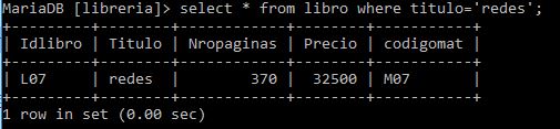 select * from libro where descripcion='redes';