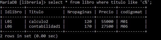 select * from libro where descripción like 'c%';