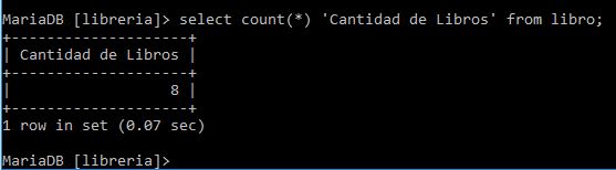 Sintaxis select count(*) from libro;