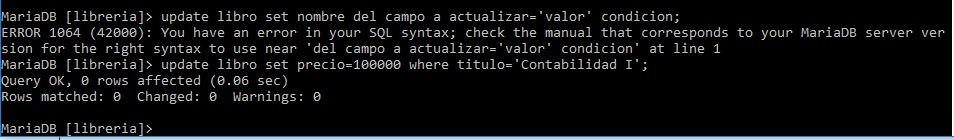 update libro set precio=100000 where titulo='Contabilidad I';